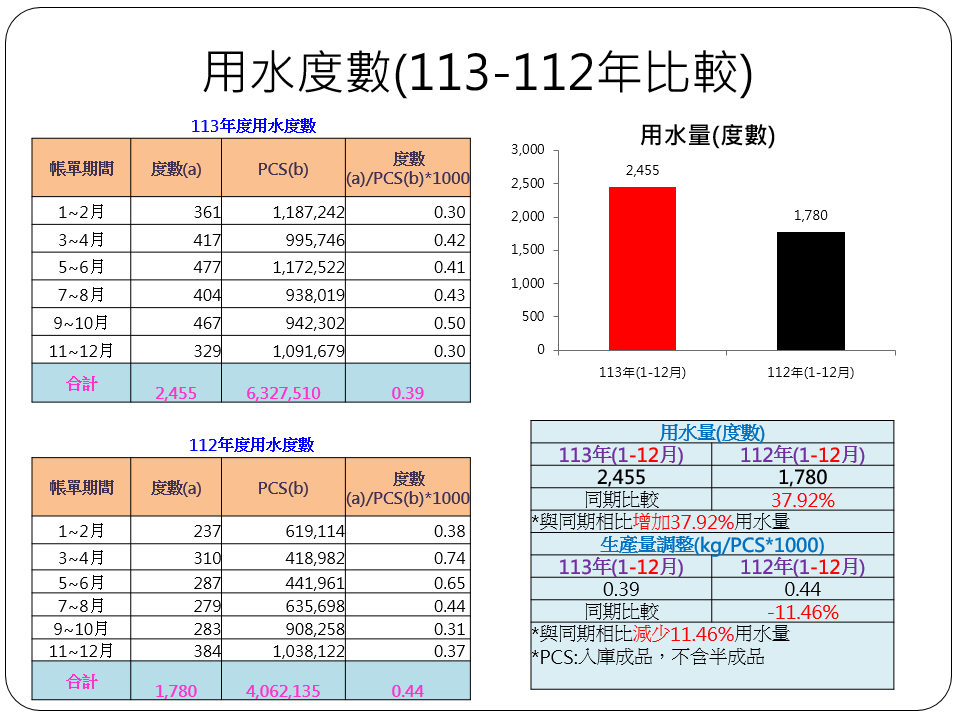 2024 年相較 2023 年基準,總用水量降低 11.46%。