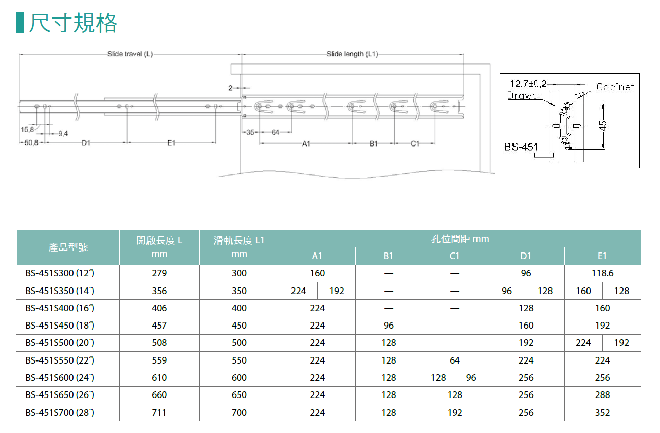 振躍 BS-451S 鋼珠滑軌